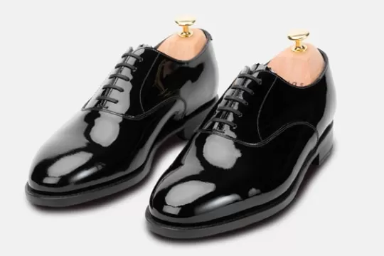 The Oxford in patent leather has a plain toe design, a specially developed black sole with brass nails and a full black leather lining. This is the must-have for any occasion with a black or white tie dress code, emitting elegance in abundance.